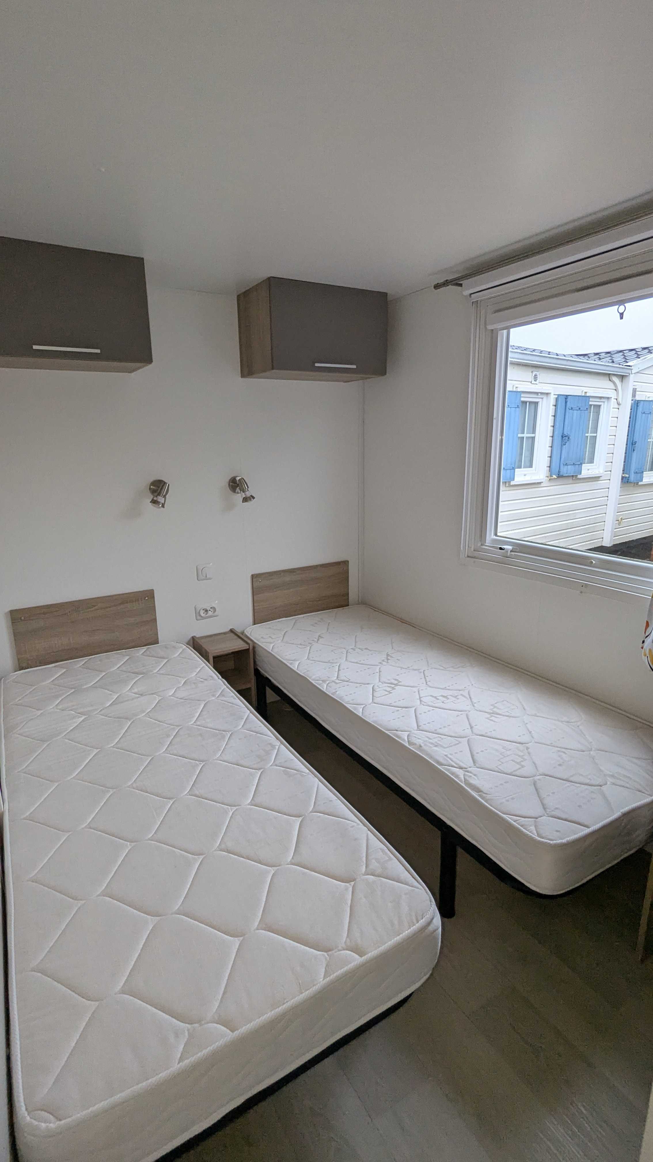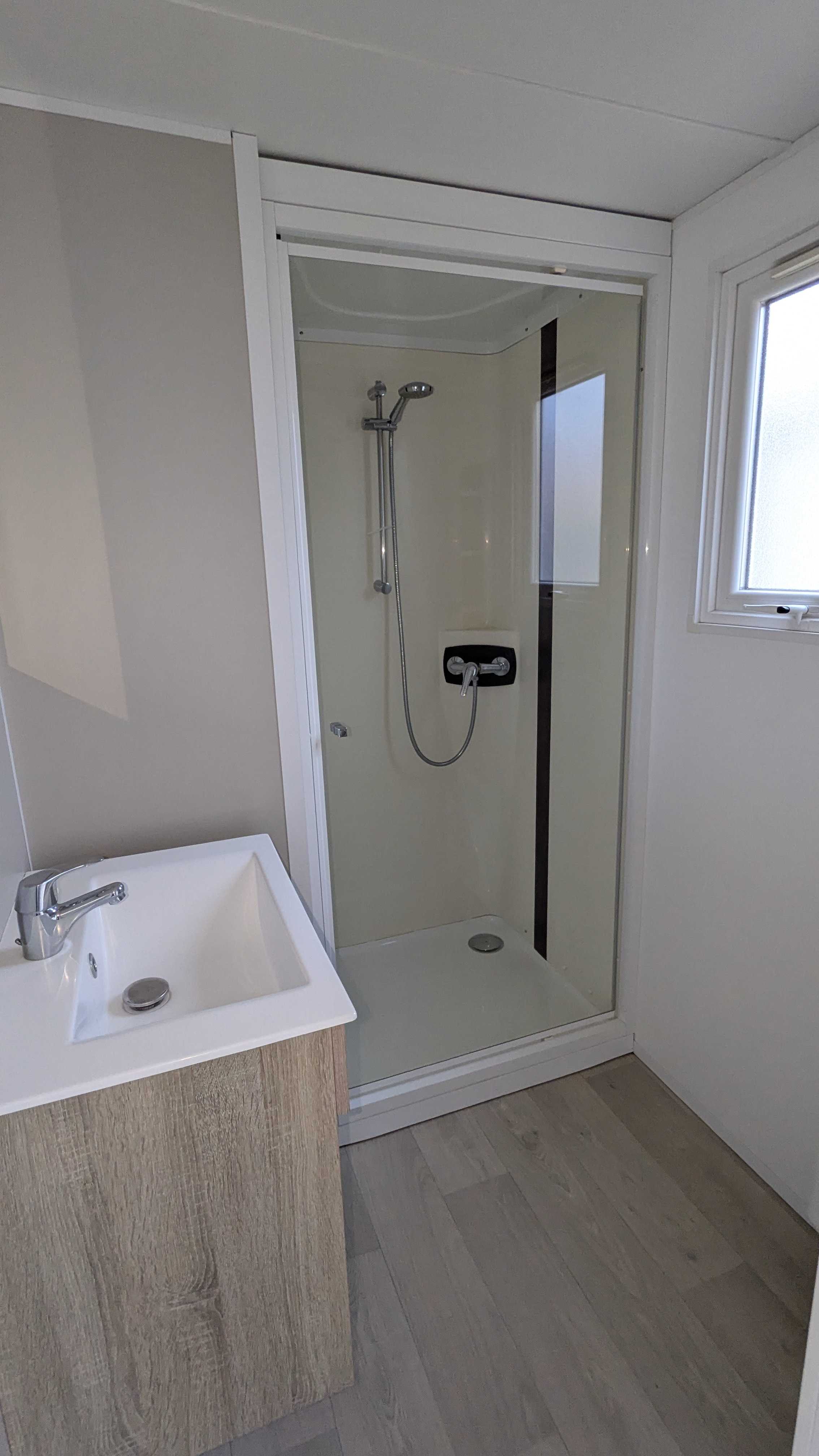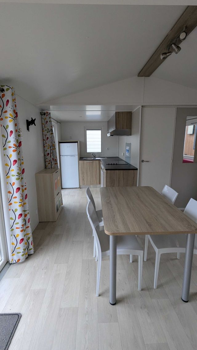 Mobil-home d'occasion 2 chambres très lumineux avec sa cuisine ouverte sur l'extérieur, en très bon état!!