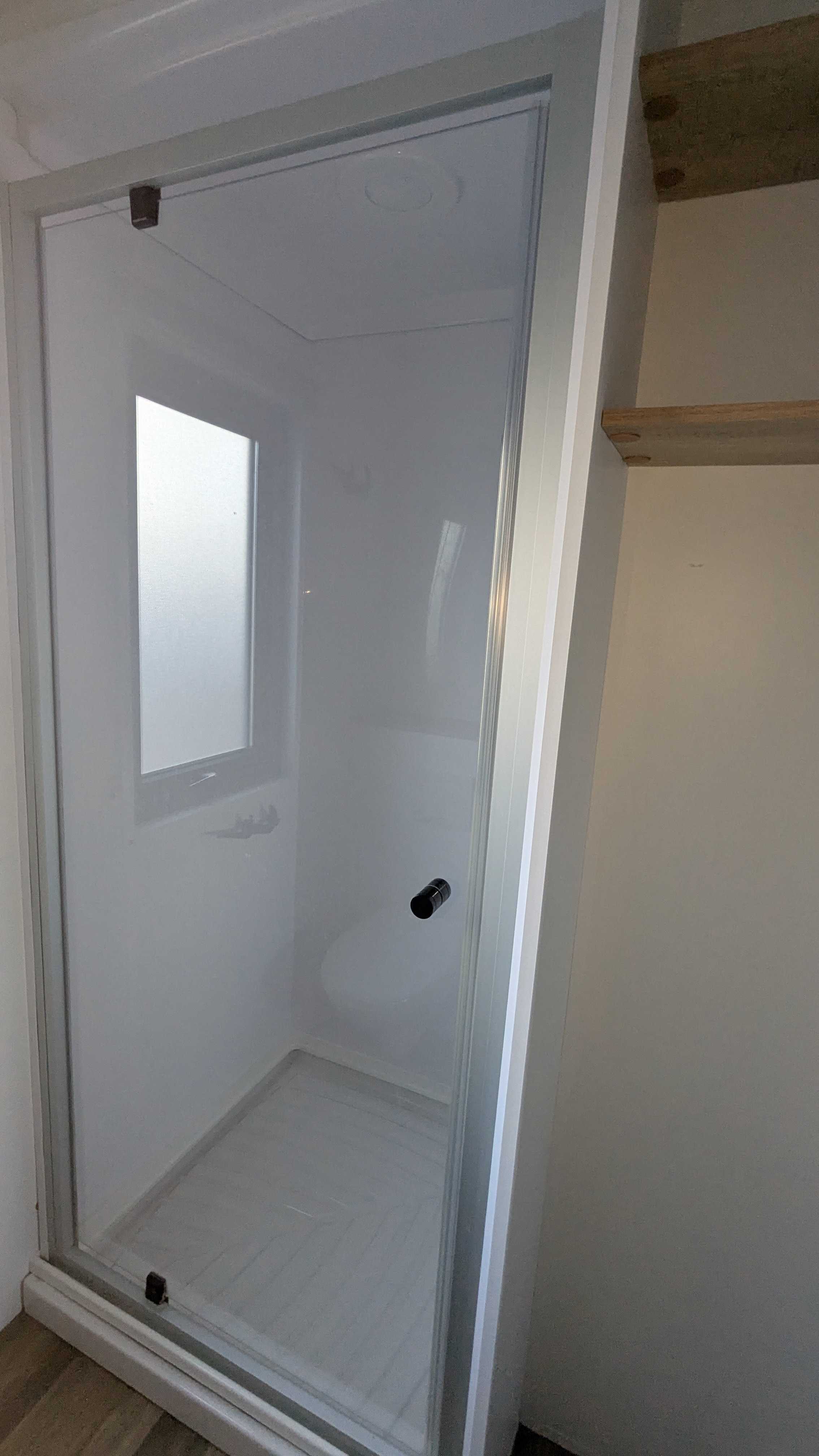 - Chambre parentale avec volet roulant et salle de bains privative: grande douche, lavabo et WC